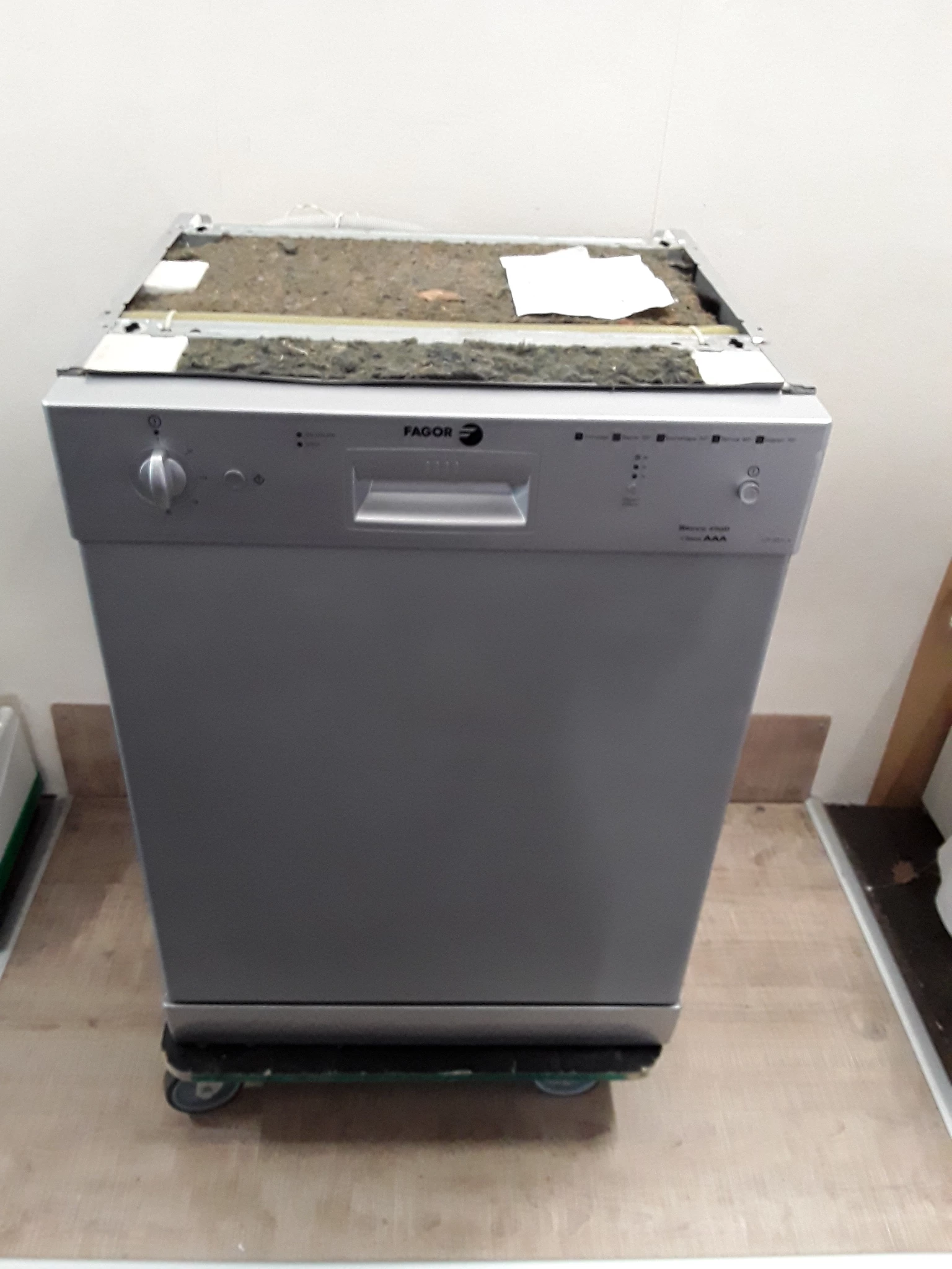 Lave-vaisselle sous-plan Gris Fagor – 12 couverts – 2200W – Energie A – 49dB – bon état. diverses rayures et petits impacts. – Appareil reconditionné par La Boîte à Utiles. Garantie: 12 mois